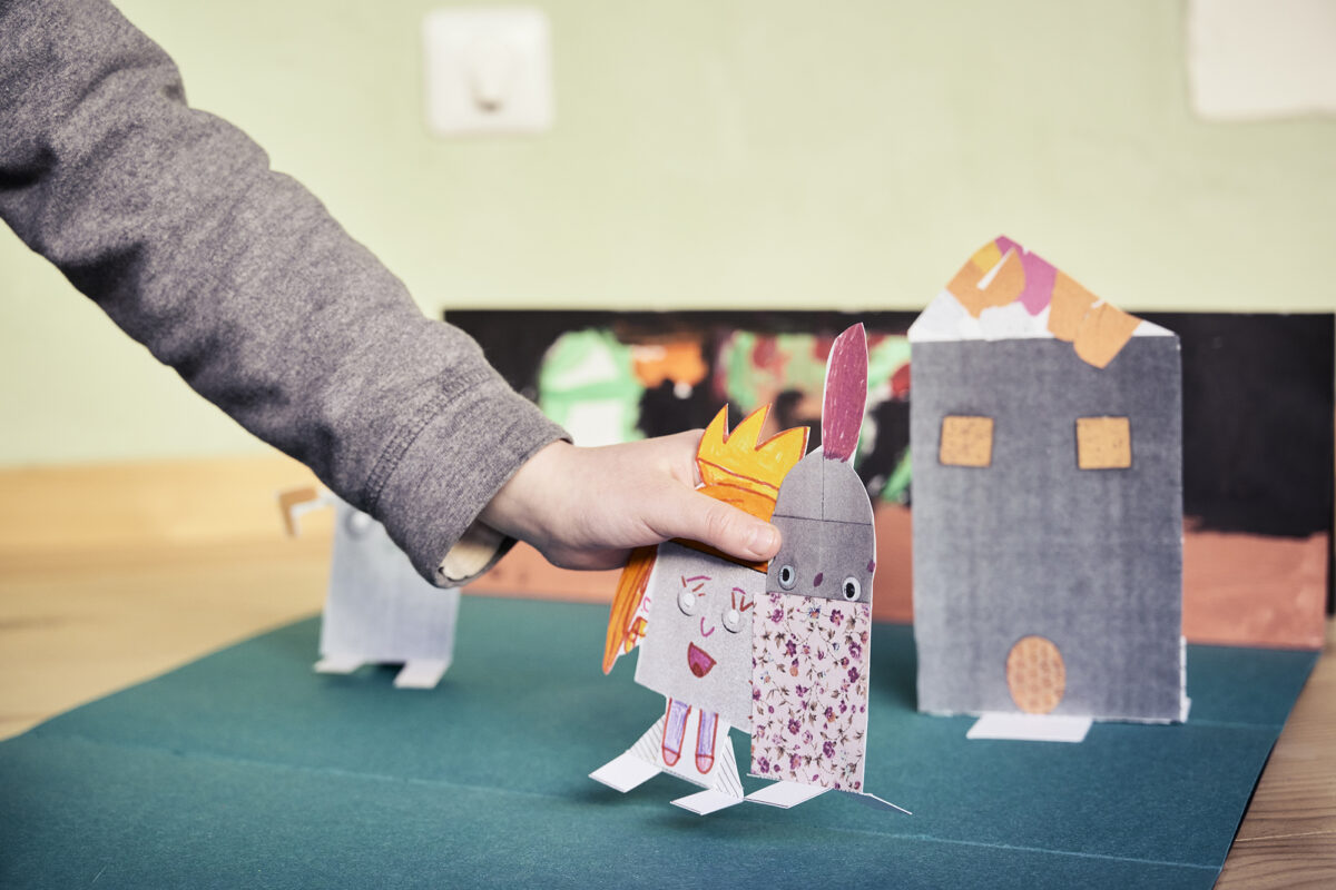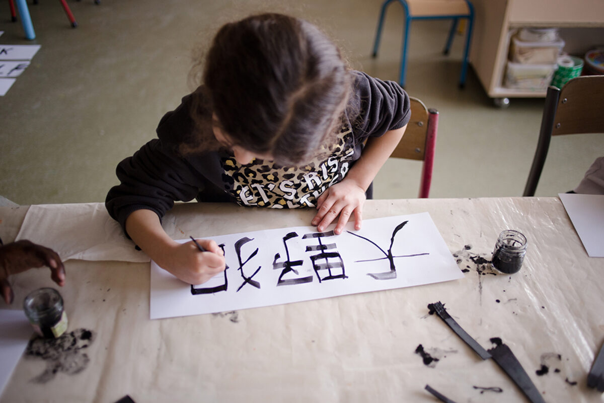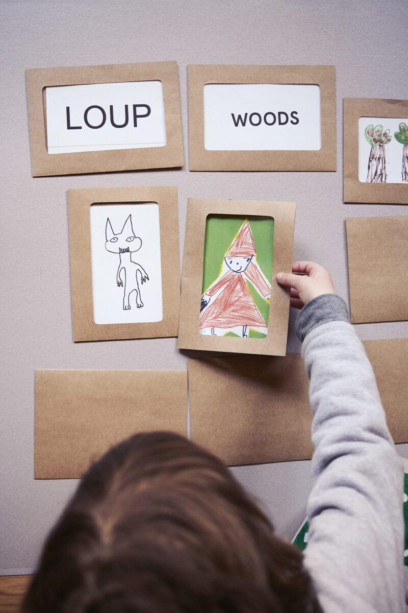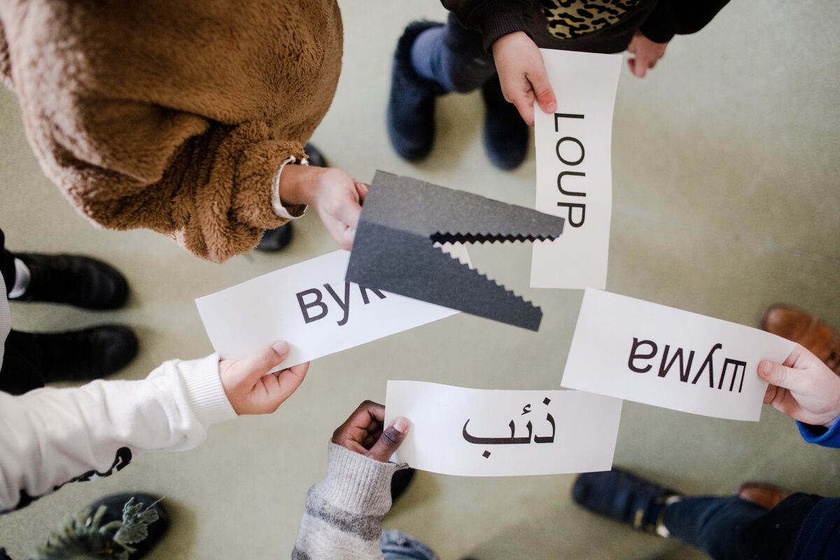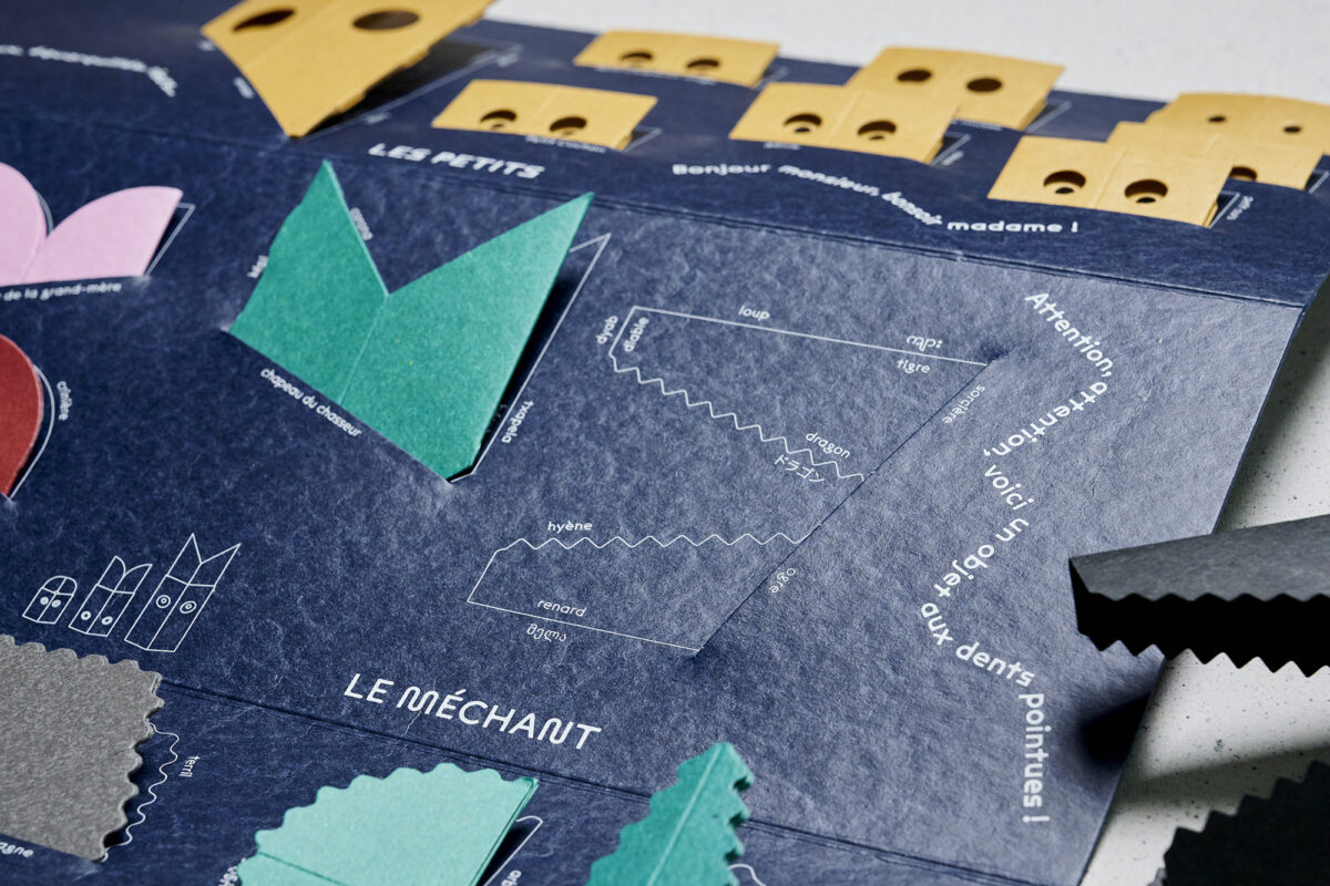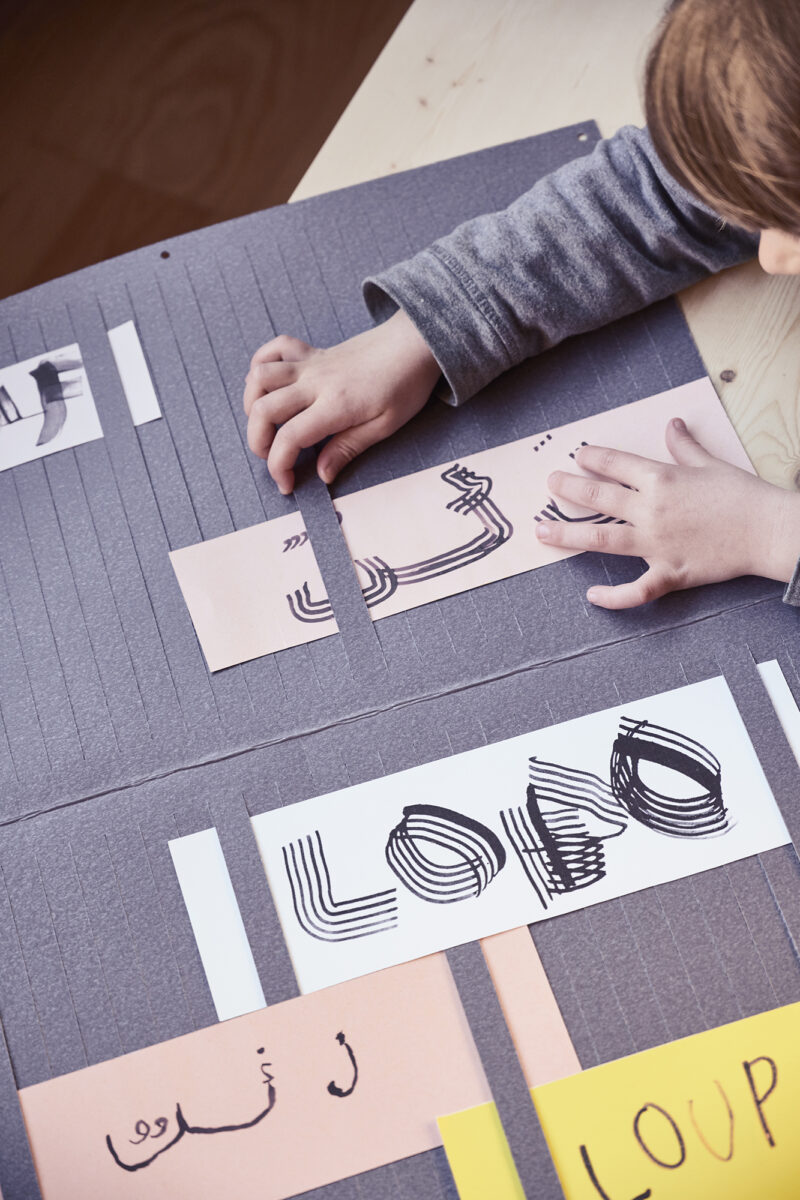 Pour prolonger l’expérience de la Boîte à histoires et nourrir l’imaginaire associé aux langues, nous avons conçu des activités artistiques et ludiques, et des supports qui les accompagnent : des cartes-couleur et des cartes-matière pour fabriquer des jeux, des supports de présentation pour valoriser le travail des enfants, des rubans qui naviguent entre les familles et les structures éducatives, des peignes de calligraphie pour découvrir la diversité des systèmes d’écriture. Toutes ces propositions sont réunies dans un manuel, que nous avons rédigé comme un livre de cuisine dans lequel on viendrait piocher selon l’appétit du moment.