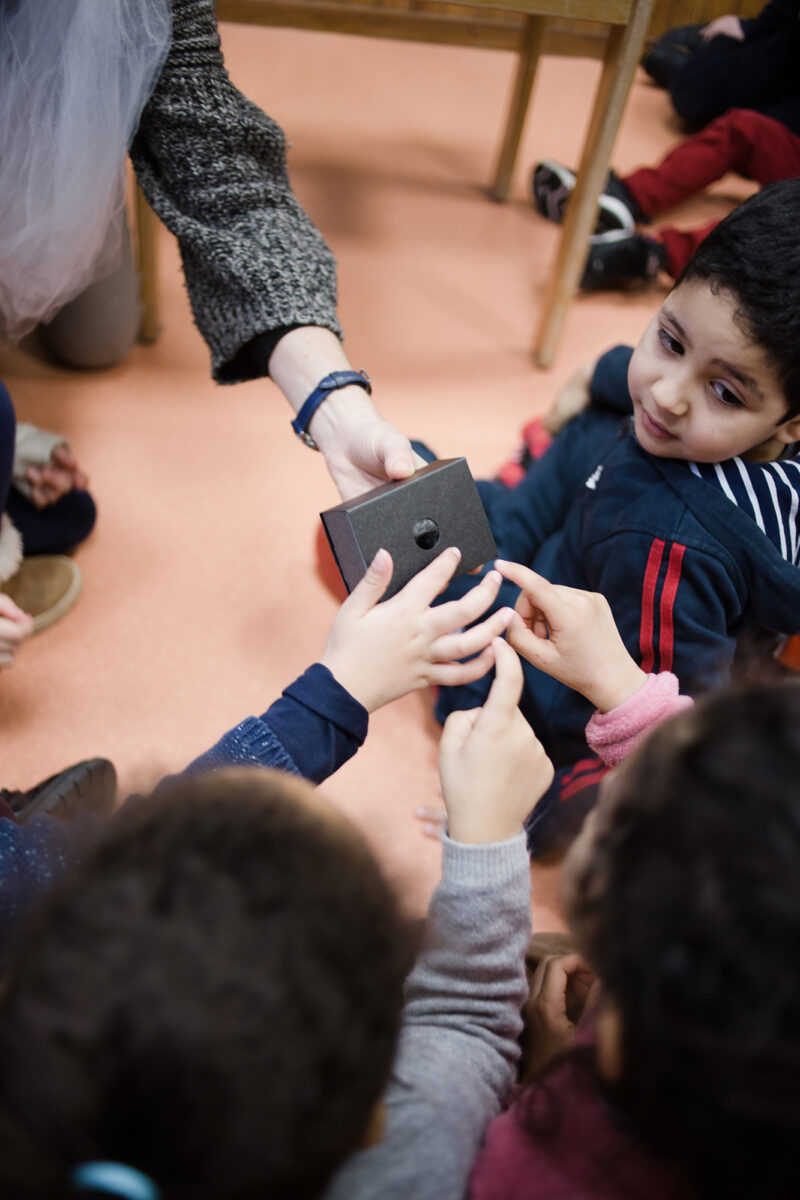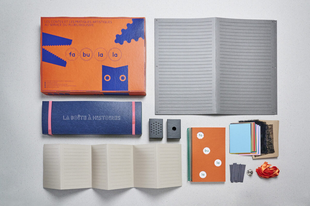 Conçue pour et avec l’association Dulala, la mallette Fabulala met les contes et les pratiques artistiques au service de l’éveil au plurilinguisme. Au cœur de cet outil se trouve un support pour raconter des contes dans toutes les langues : la Boîte à histoires. En manipulant sur une petite scène des objets représentant de manière symbolique les différents éléments d’un conte (lieux, personnages, objets…), les étapes du récit se matérialisent sous les yeux des enfants, entraînés par les sons et la musicalité de différentes langues.