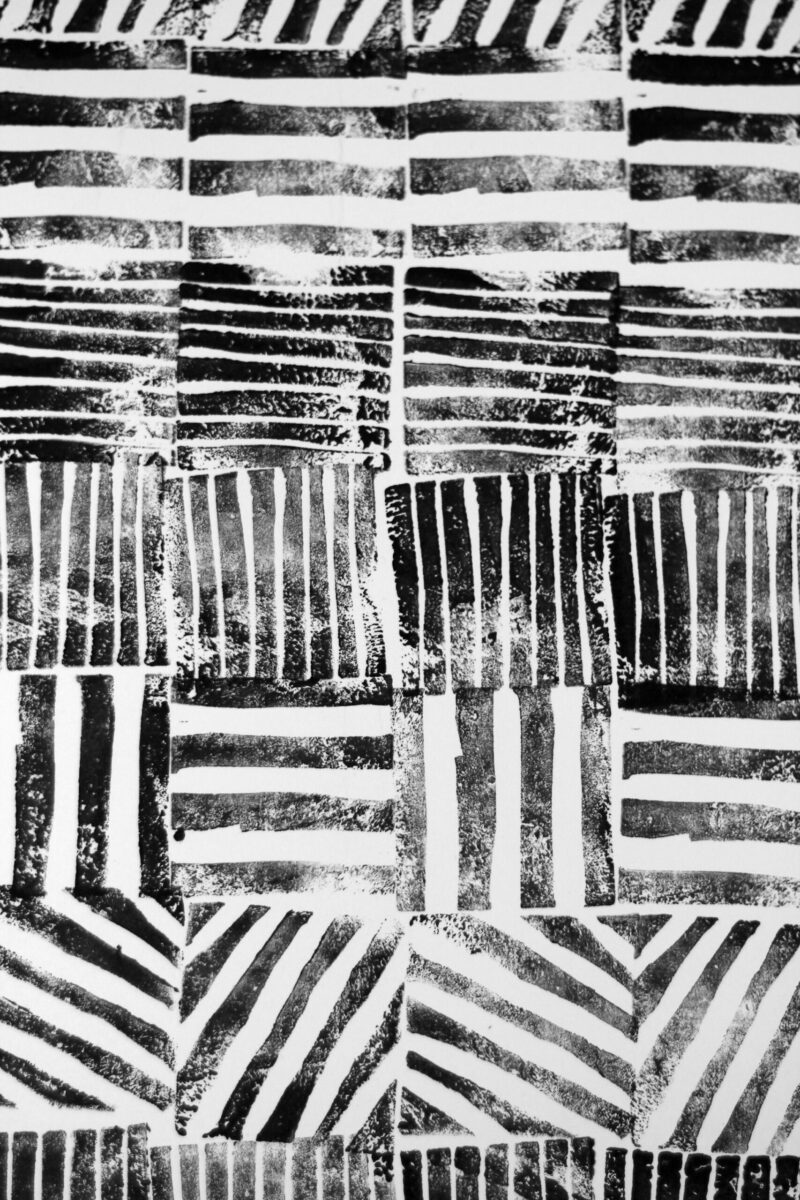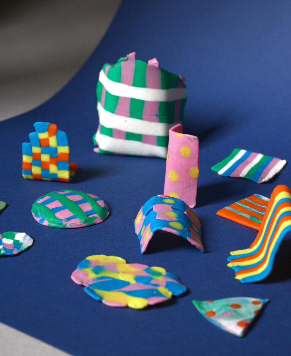 Du sol au plafond, de la feuille au volume, les formes géométriques envahissent l’atelier et viennent conquérir de nouveaux territoires. Sur les papiers peints, dans la rue, sur nos vêtements… les motifs sont tout autour de nous.